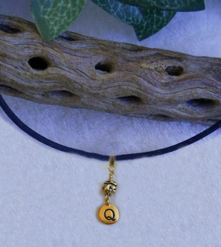 "Q" Tierracast silver pewter Charm on cord Necklace